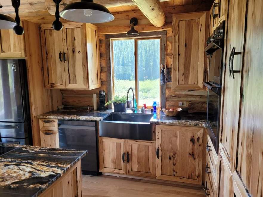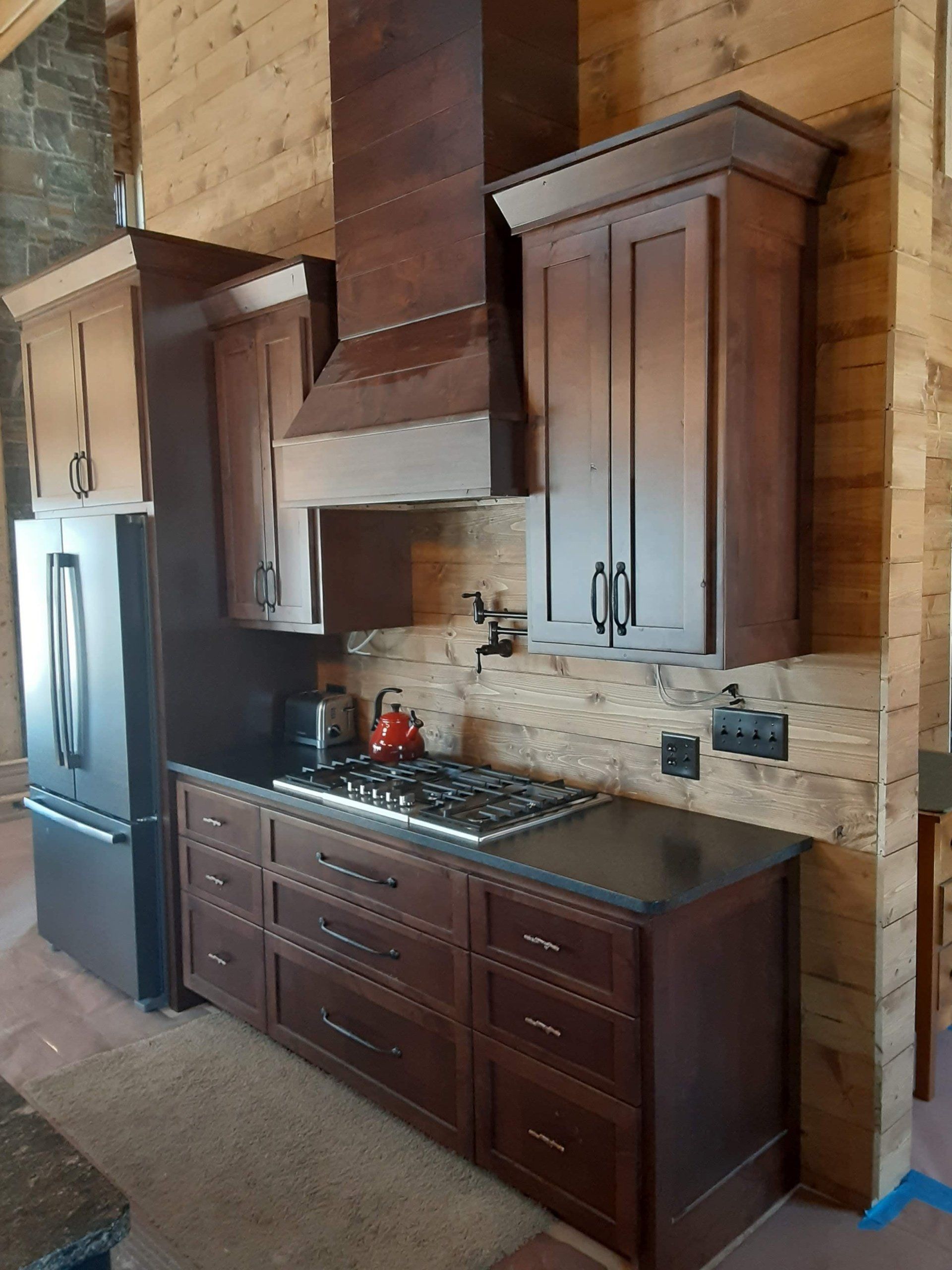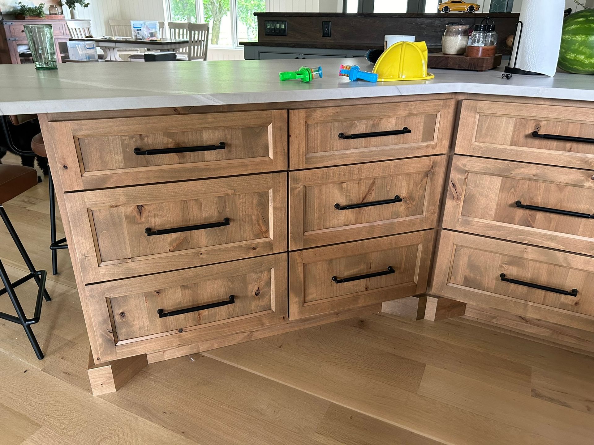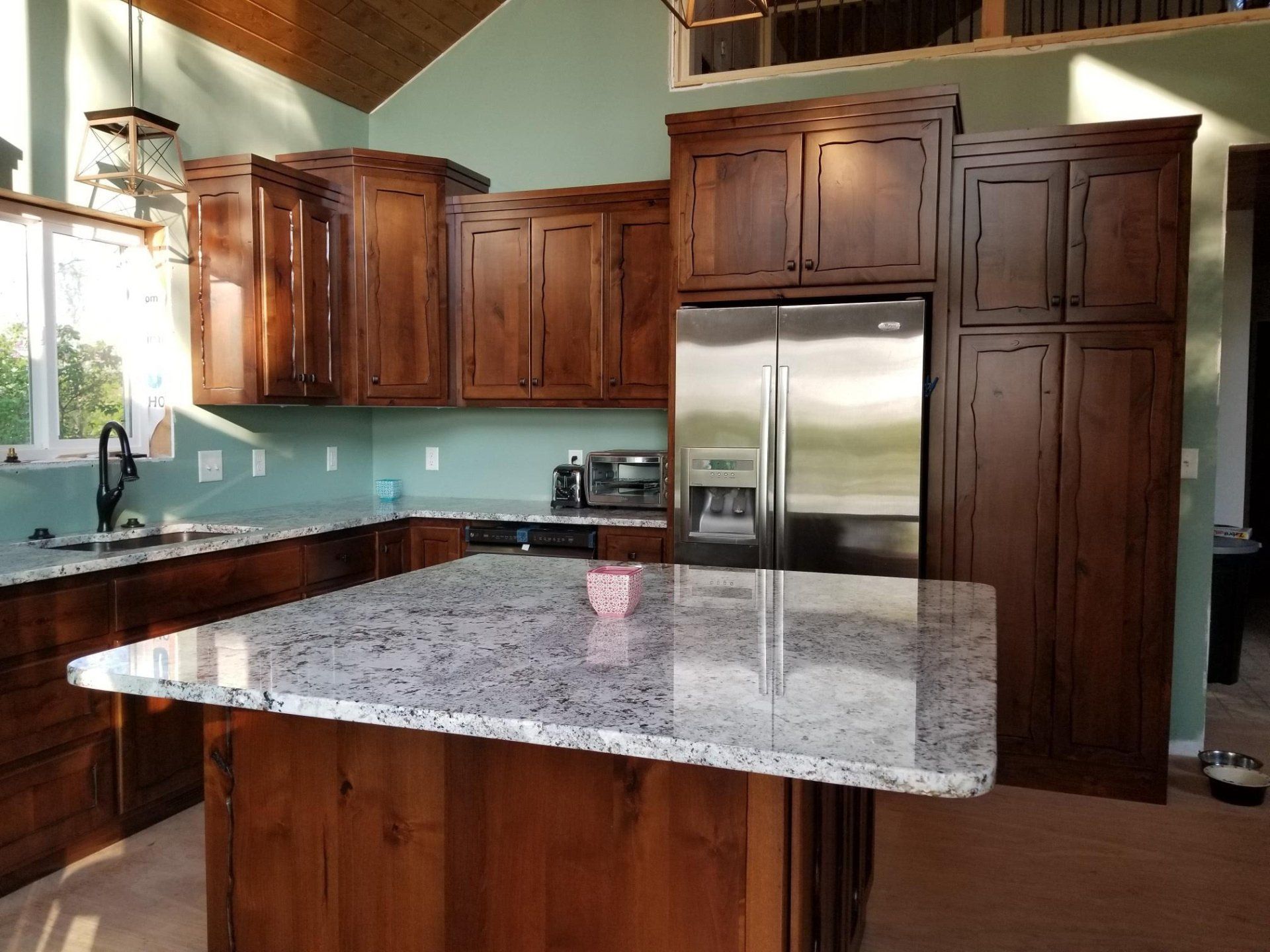 Stained Rustic Alder - Live Edge Doors - Slab Drawers
