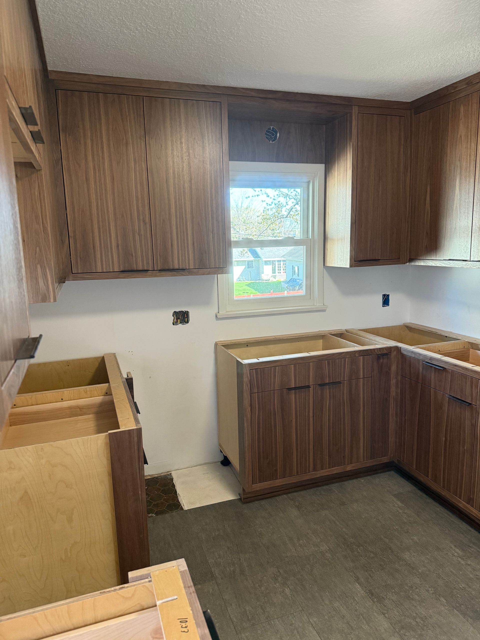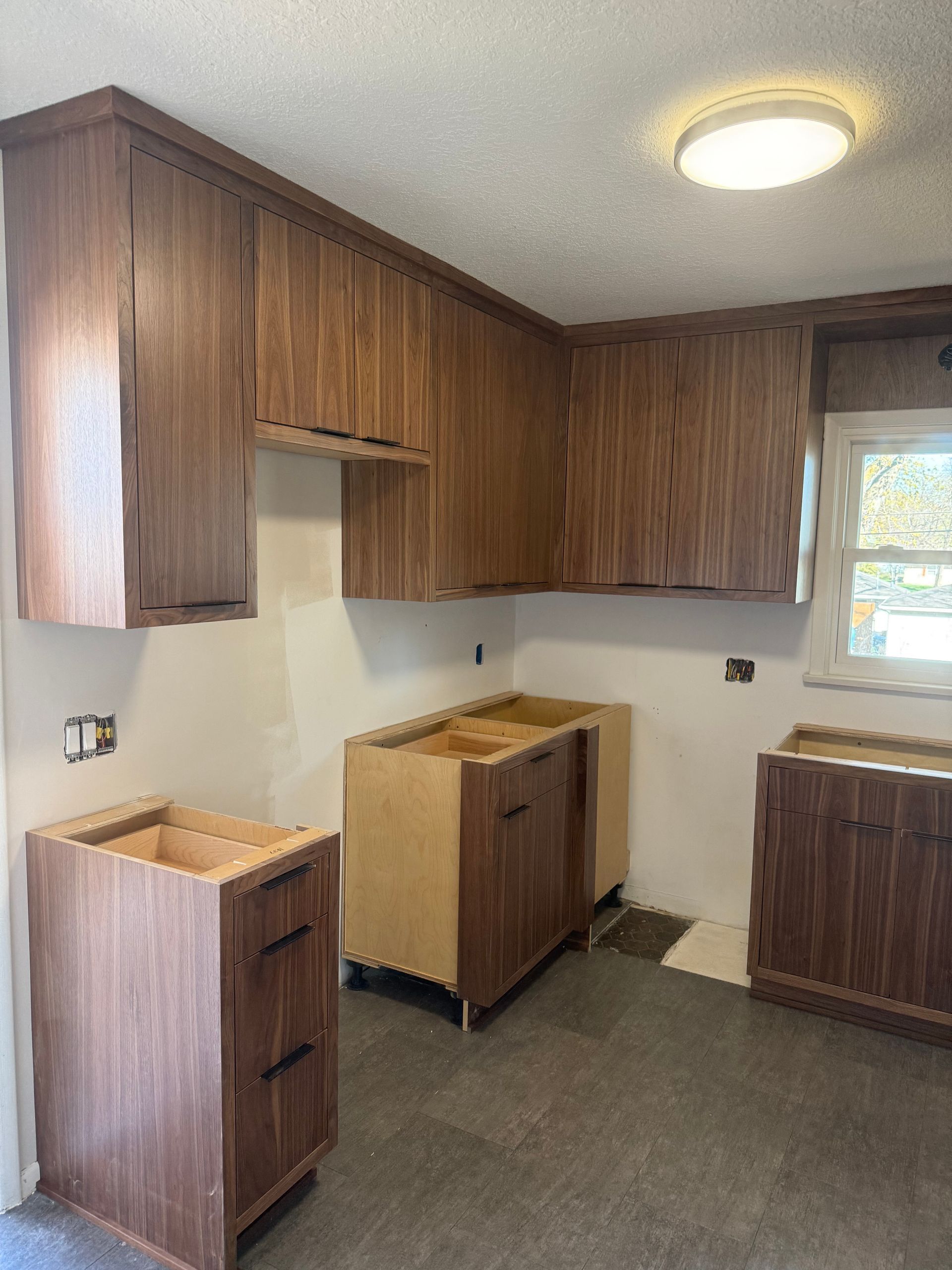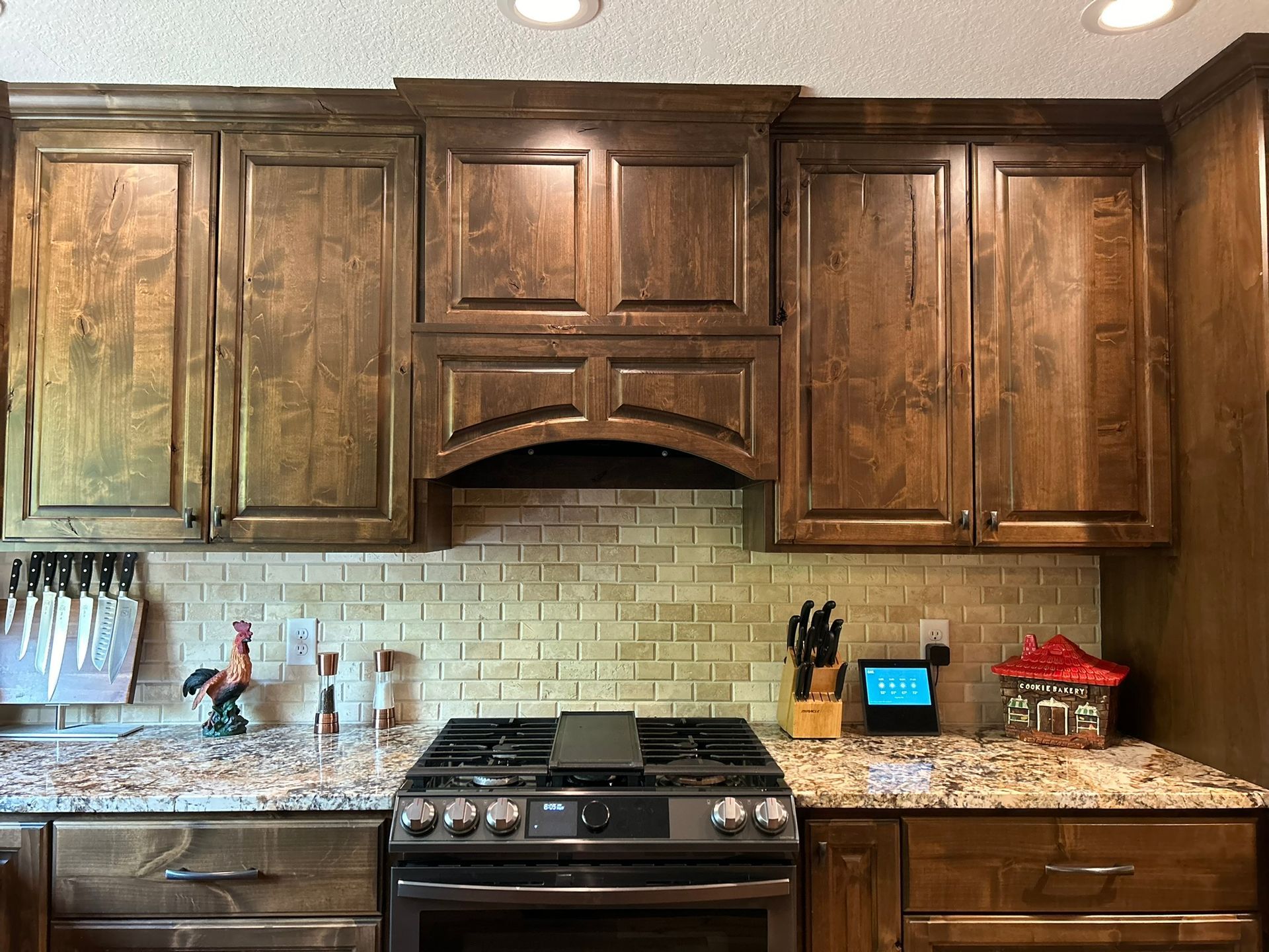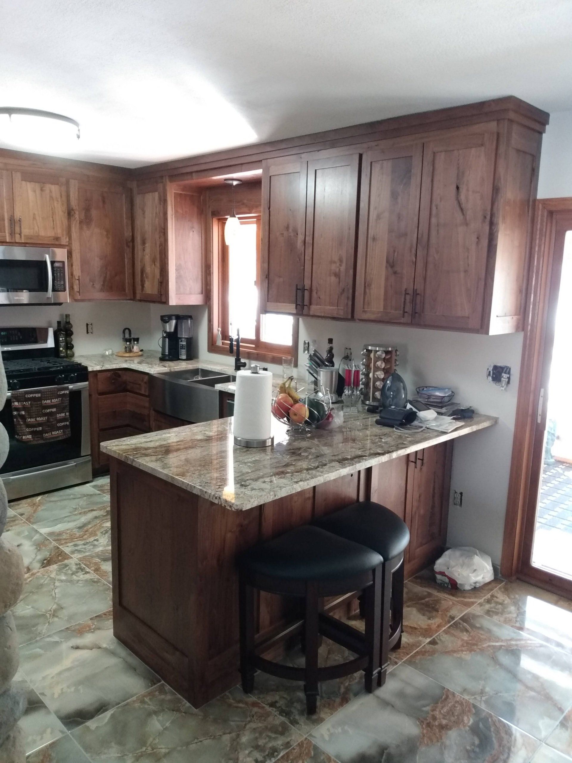 Stained Rustic Alder - Live Edge Doors - Slab Drawers