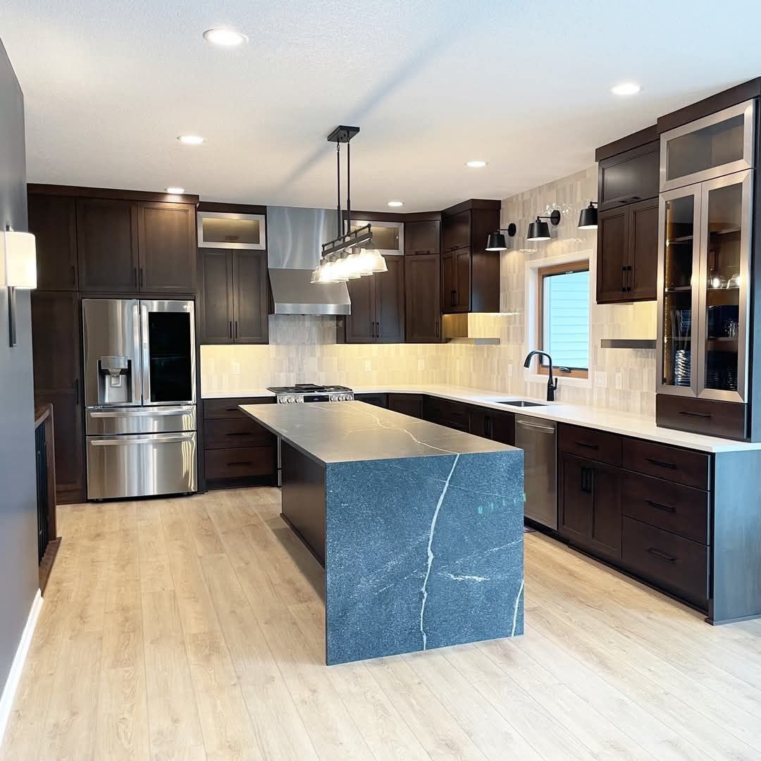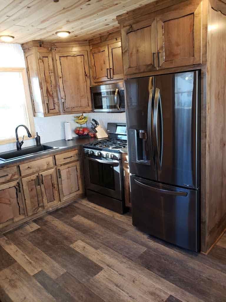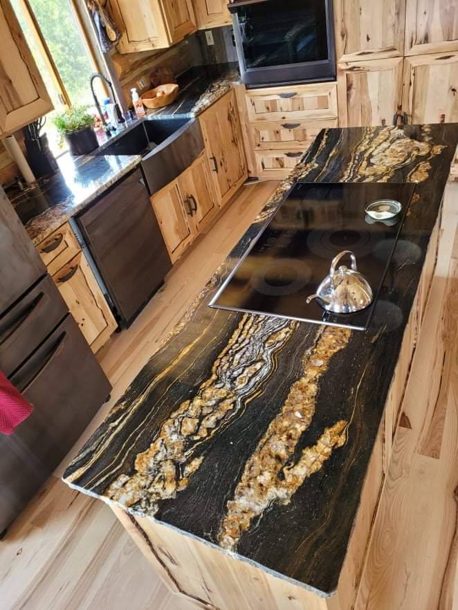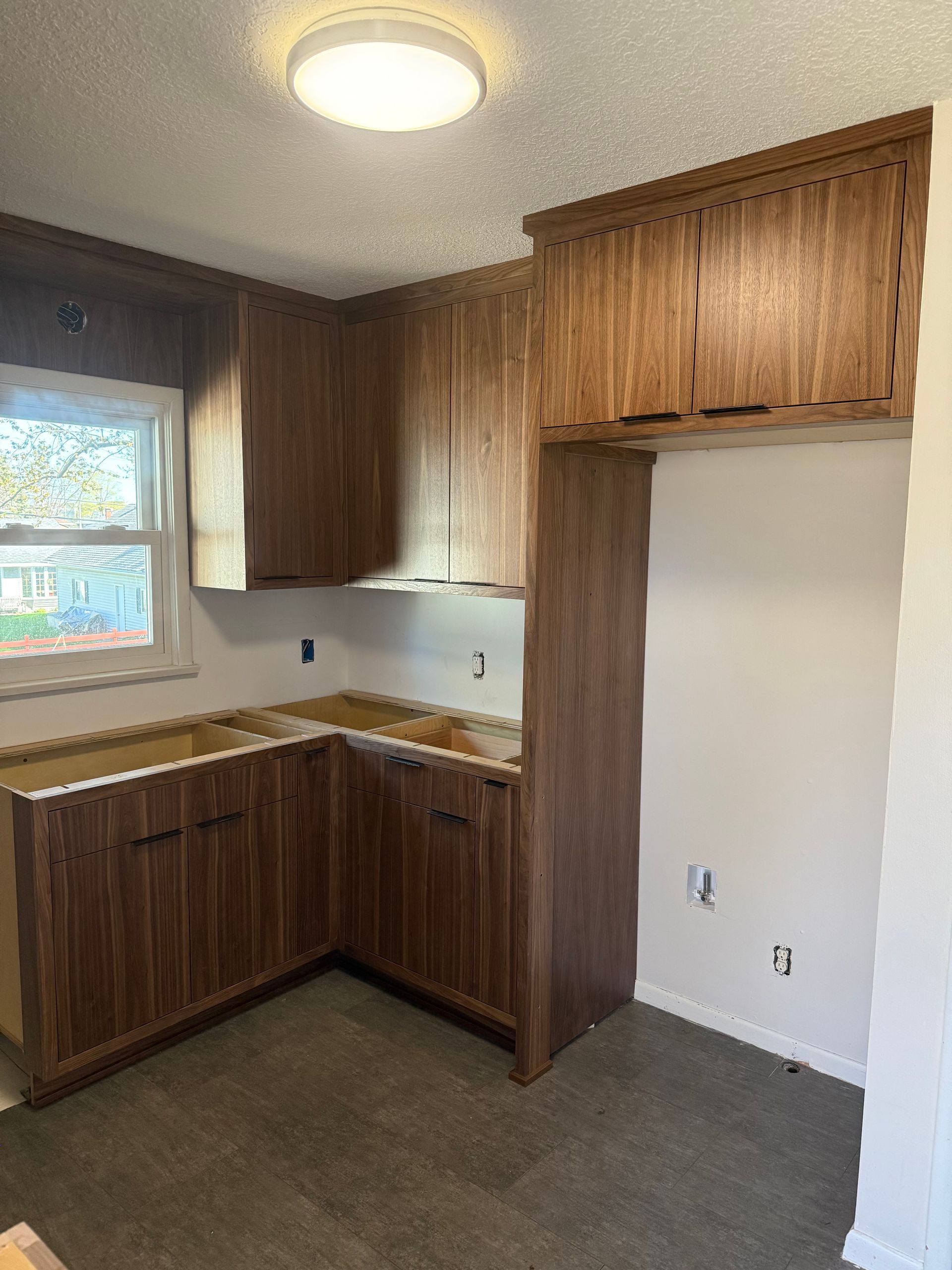 Stained Rustic Alder - Live Edge Doors - Slab Drawers